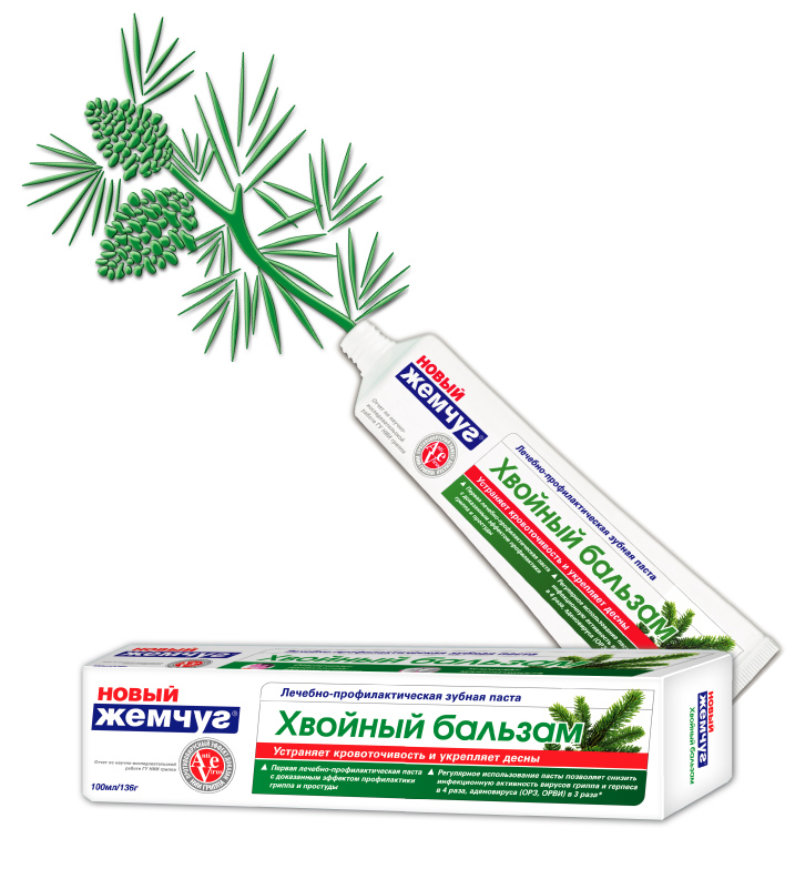 Принимая во внимание все перечисленные выше моменты, можно определенно утверждать, что зубная паста «Новый жемчуг Хвойный Бальзам» в данном контексте является оптимальным выбором. В формулу этой пасты входит уникальный по своим свойствам продукт – целебная хвойная хлорофилло-каротиновая паста, которая является источником хлорофилла, каротина, витаминов А, D3, K1, К2, Е, F. Наличие этого компонента в составе зубной пасты «Новый жемчуг Хвойный Бальзам» при ее регулярном применении обеспечивает уменьшение кровоточивости десен и укрепление тканей пародонта, а также способствует профилактике заболеваний мягких тканей полости рта. Кроме того, эта паста имеет дезодорирующее и ранозаживляющее действие. Надо отметить, что эта зубная паста содержит также кальций, необходимый для укрепления эмали зубов и защиты от кариеса.